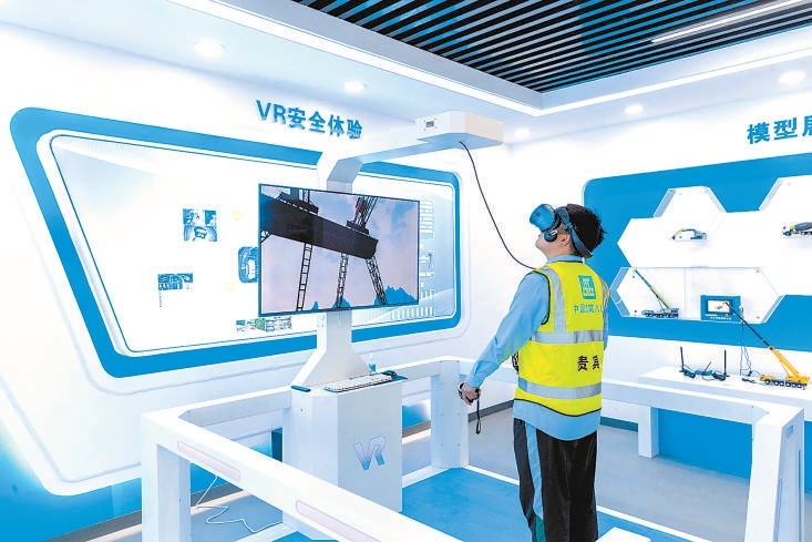 工作人员在雄安新区一智慧工地展示厅进行工地VR安全体验。 新华社发