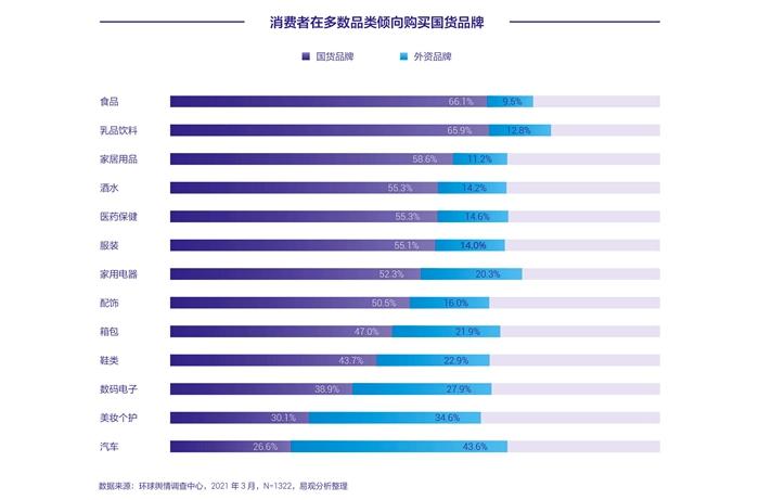 《报告》显示,在此背景下,国货受关注度快速上升,消费者在食品、乳品饮料、家居用品等多数品类均倾向购买国货品牌。90/95后年轻人群成为新的消费主力,国货品牌迎来了新的发展窗口。新消费人群知识素养不断提升,拥有更强的自主意识和文化自信,不再盲目崇拜国外品牌,愿意为个性和兴趣买单,更注重消费体验,成为国货品牌快速崛起的根本驱动力。