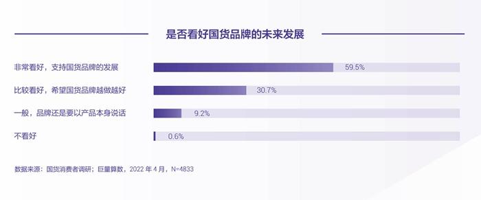 在国货全面崛起的背景下,国货品牌在多个领域影响力与日俱增。从满足个性化需求的服装服饰,到不输大牌的平价彩妆,再到具备高科技含量的3C电子、智能手机等,均受到用户的追捧,九成消费者看好国货品牌的未来发展。
