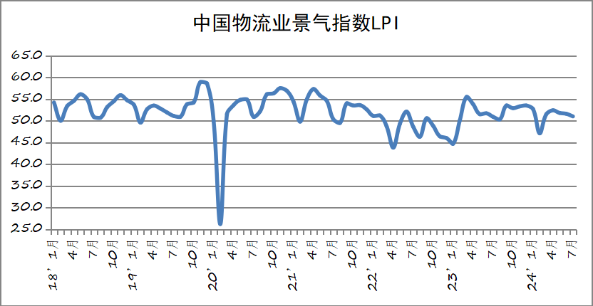 中国物流与采购联合会发布的2024年7月份中国物流业景气指数为51%,较上月回落0.6个百分点;中国仓储指数为46.5%,较上月回落2个百分点。