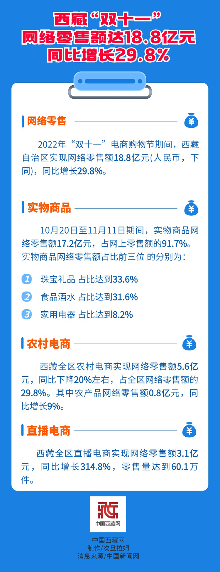 西藏“双十一”网络零售额达18.8亿元 同比增长29.8%