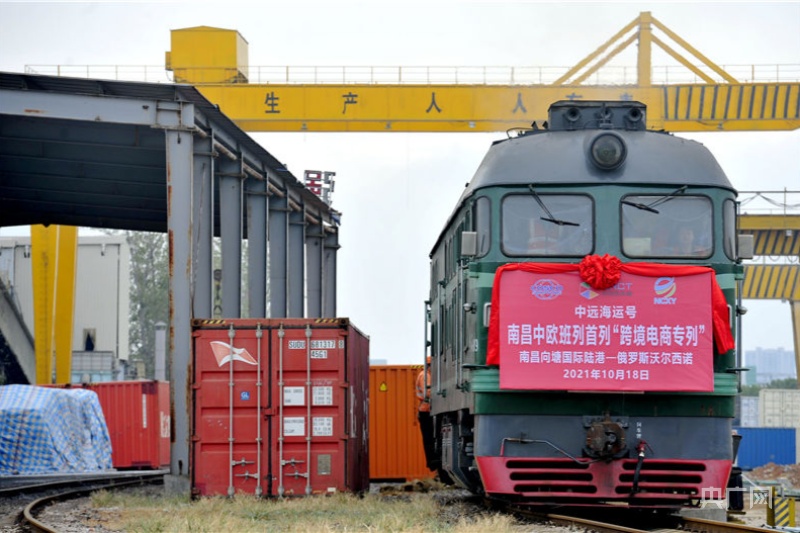 南昌中欧班列迎来新的里程碑!2021年10月18日,随着一声汽笛鸣响,由中远海运承运的南昌中欧班列跨境电商B2B出口专列,从南昌向塘国际陆港缓缓驶出,这标志着南昌首列跨境电商中欧班列正式开行,此次货物主要为服装和家居用品等,预计18天后到达俄罗斯沃尔西诺站。