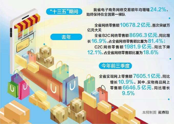 我省电子商务稳步发展,实现网络交易额逐年上升,“十三五”期间年均增幅24.2%,始终保持在全国第一梯队。